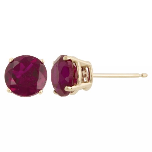 July's birthstone shows off its rich purplish-red color in these simple, well-made earrings. Faceted 6mm rounds of lab-created ruby are mounted in four-prong basket settings of 14 karat yellow gold. Finished with 14 karat posts and friction backings, these pretty studs are as durable as they are beautiful. They make a perfect gift for someone with a July birthday, or for anyone who loves the romance of rubies.